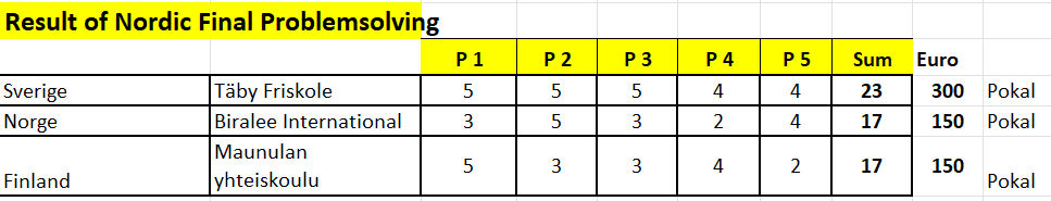 Här ovan är bilder från den Nordiska finalen där Täby Friskola vann problemlösandet.